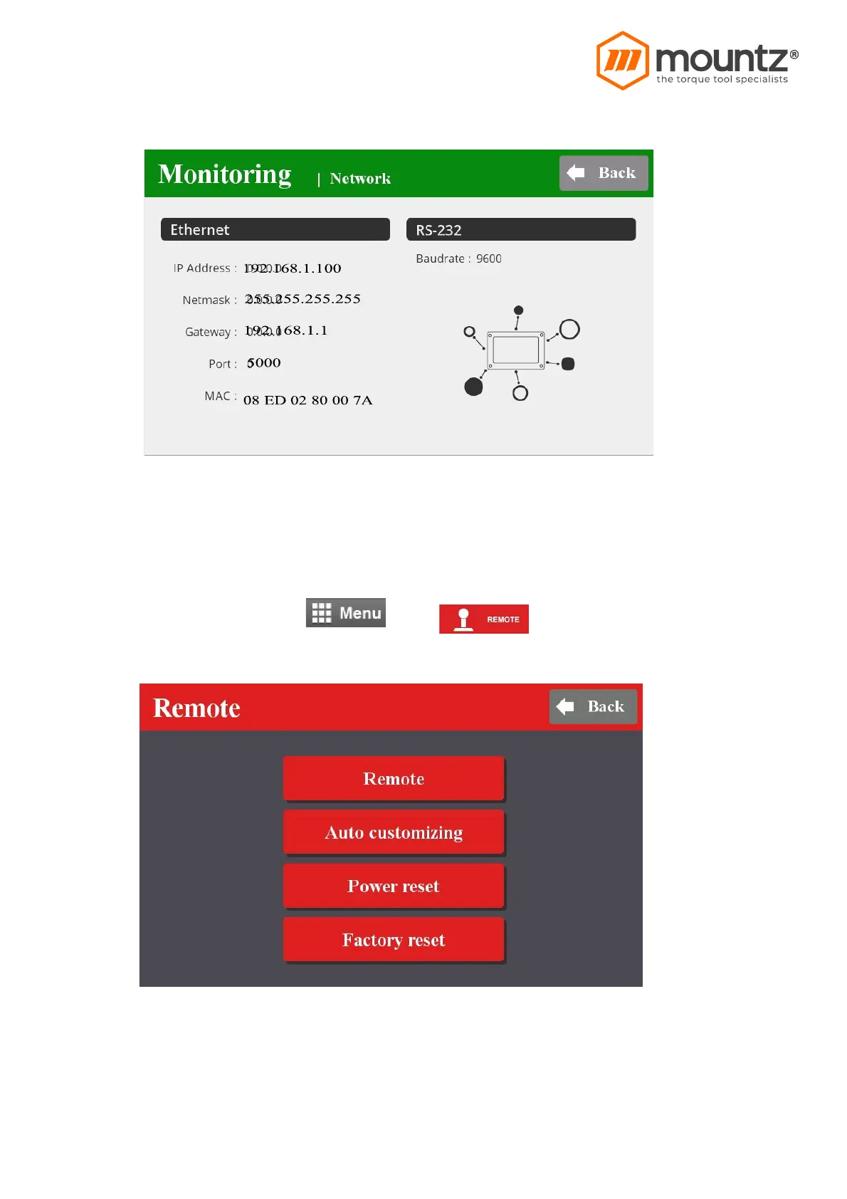 Mountz MDC Series - Network Setting; Remote