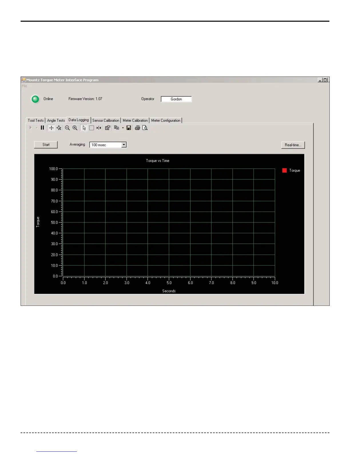 Open the Torque Meter Interface program and choose the Data Logging Screen.