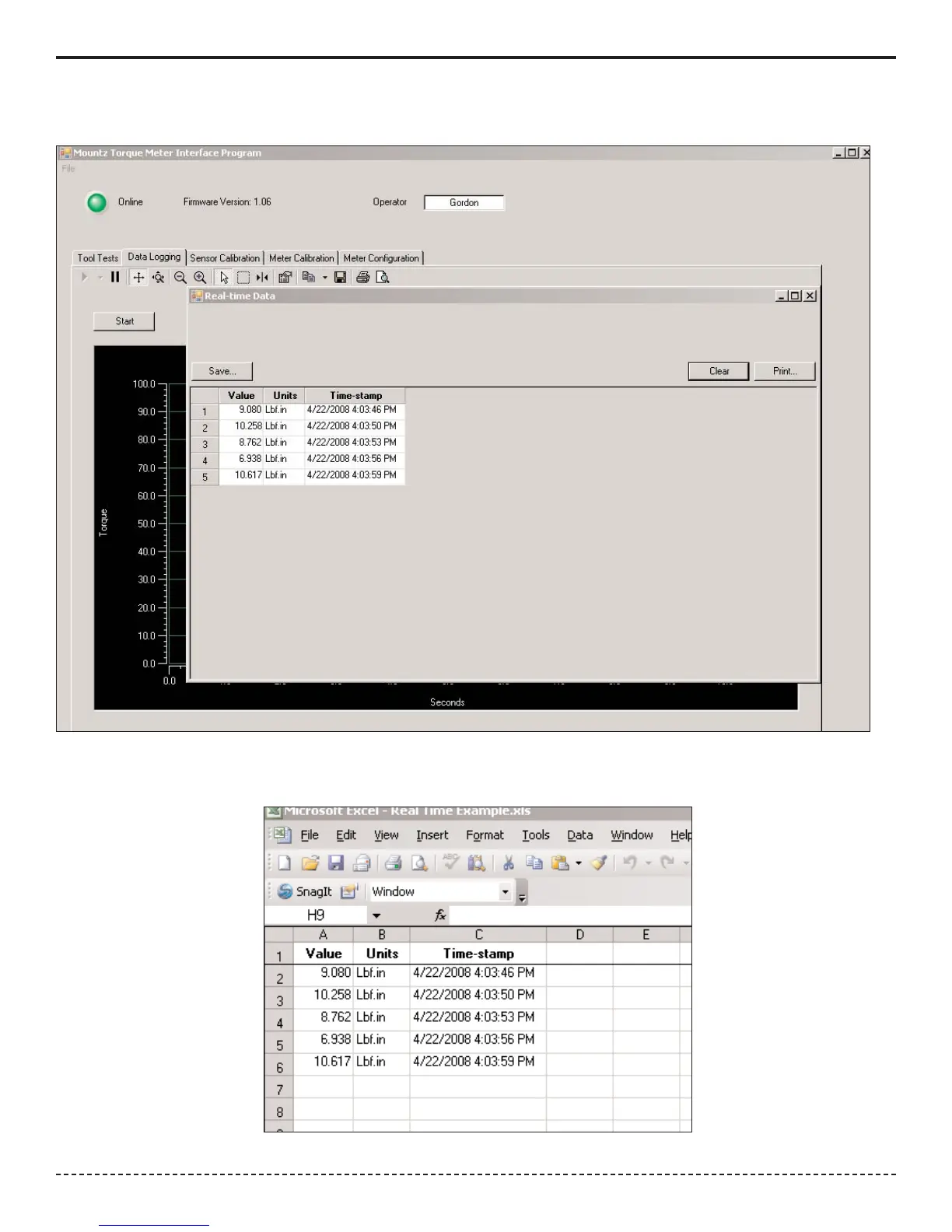 Below is an example of the Excel file created if the Real Time data is saved.