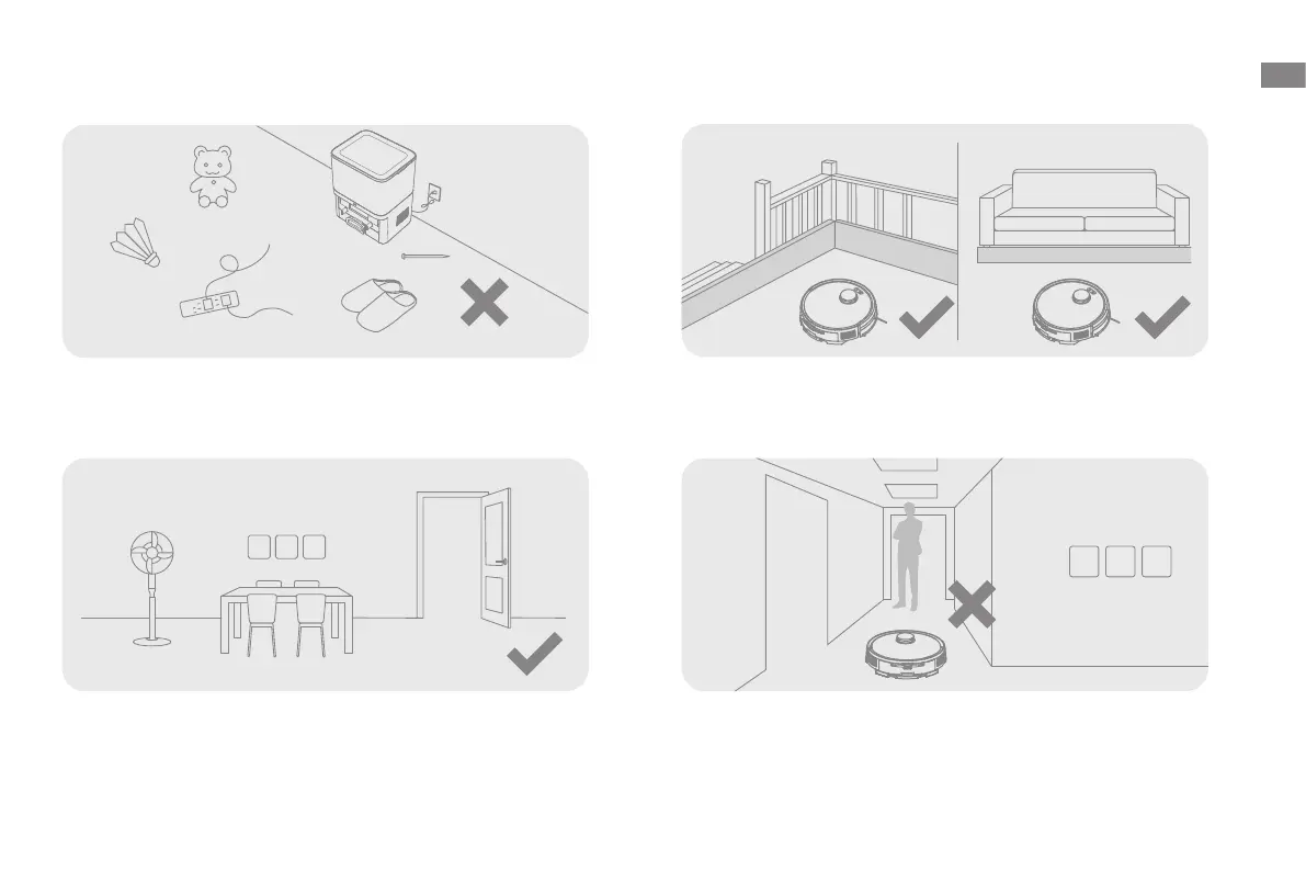 · When operating the robot for the first time, follow it around while cleaning to remove any potential obstacles in time.