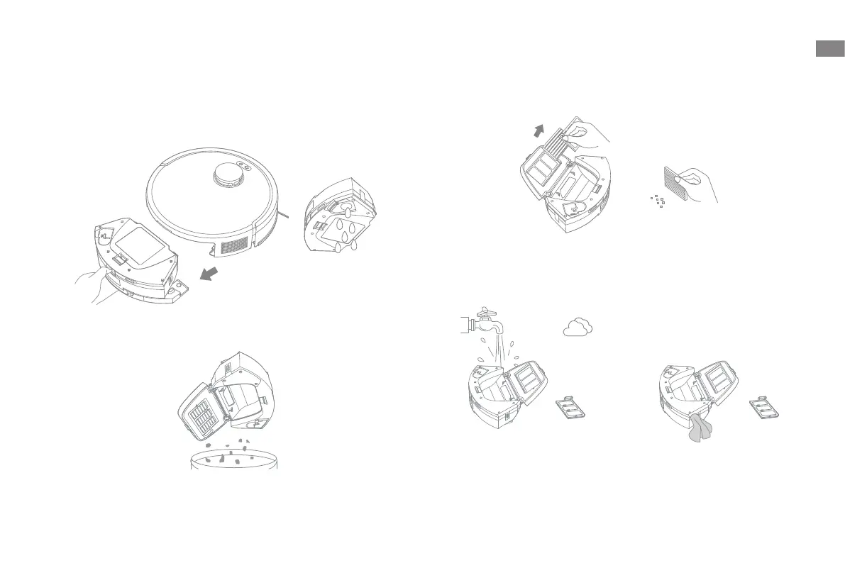 4. Rinse the dust box and primary filter with water and air dry them completely