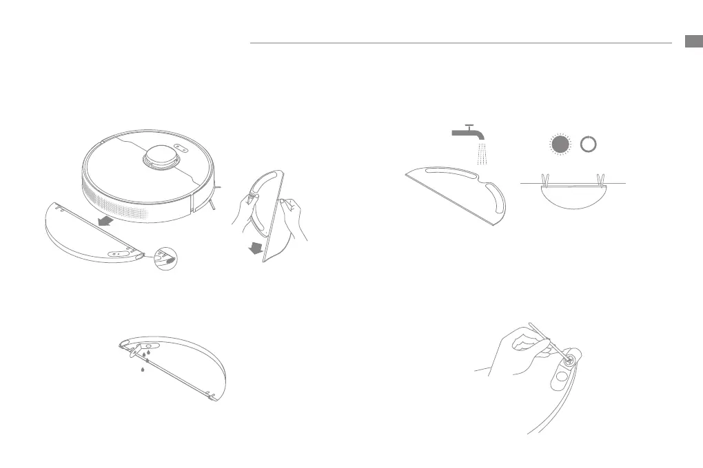 • Nehmen Sie den Wischlappen vor der Reinigung aus dem Wischmodul