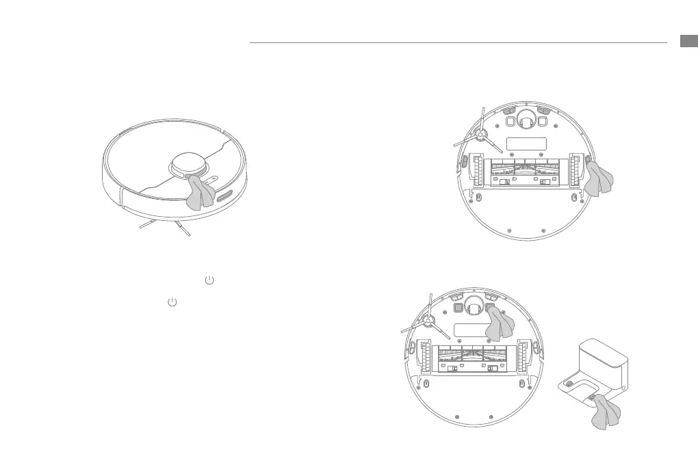 Hinweis: Bitte verwenden Sie zur Reinigung ein trockenes Geschirrtuch, da der Roboter und das innere der Ladestation empndliche Komponenten enthalten.