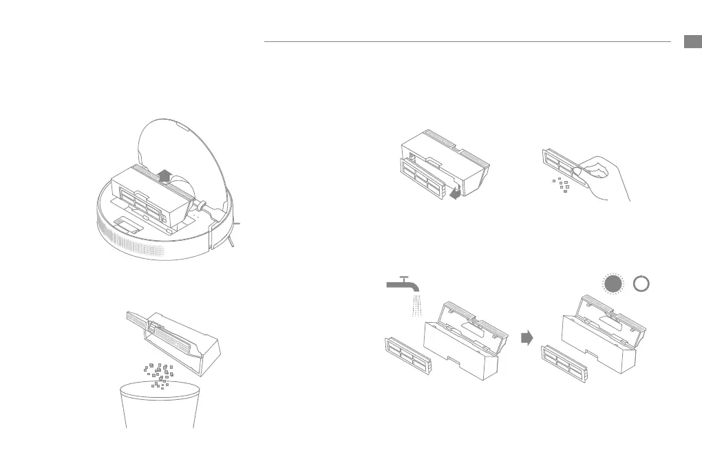 4. Rincez la poubelle (bac à poussière) et le ltre avec de l'eau