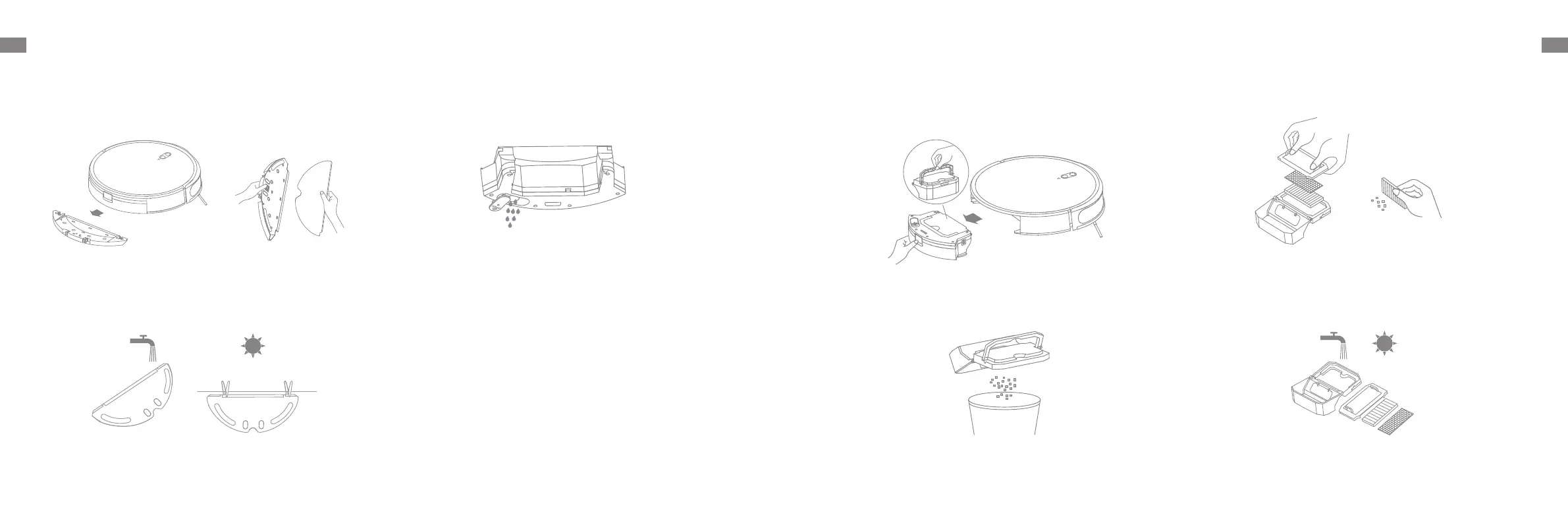 4. Skölj dammlådan och filtret med vatten och torka dem helt innan
