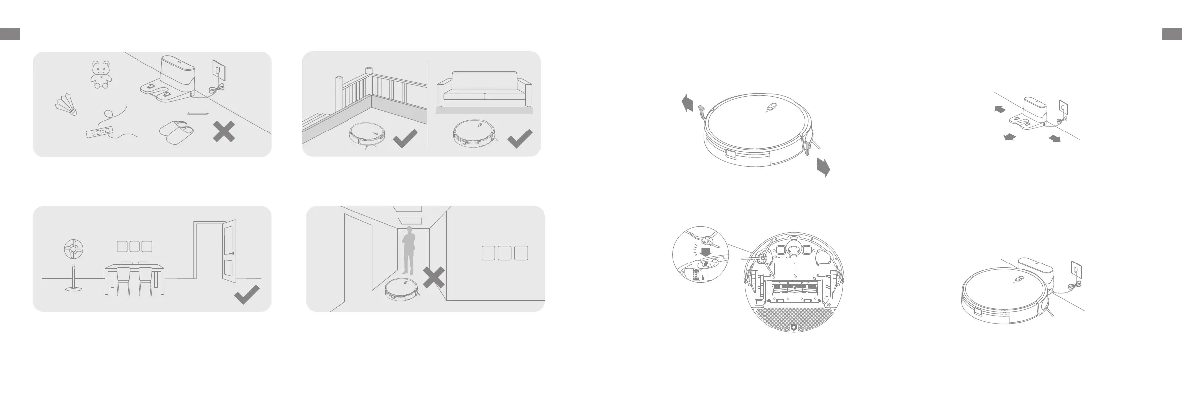 · Folgen Sie dem Roboter bei der ersten Inbetriebnahme während des Reinigungsvorgangs, um mögliche Hindernisse rechtzeitig zu entfernen.