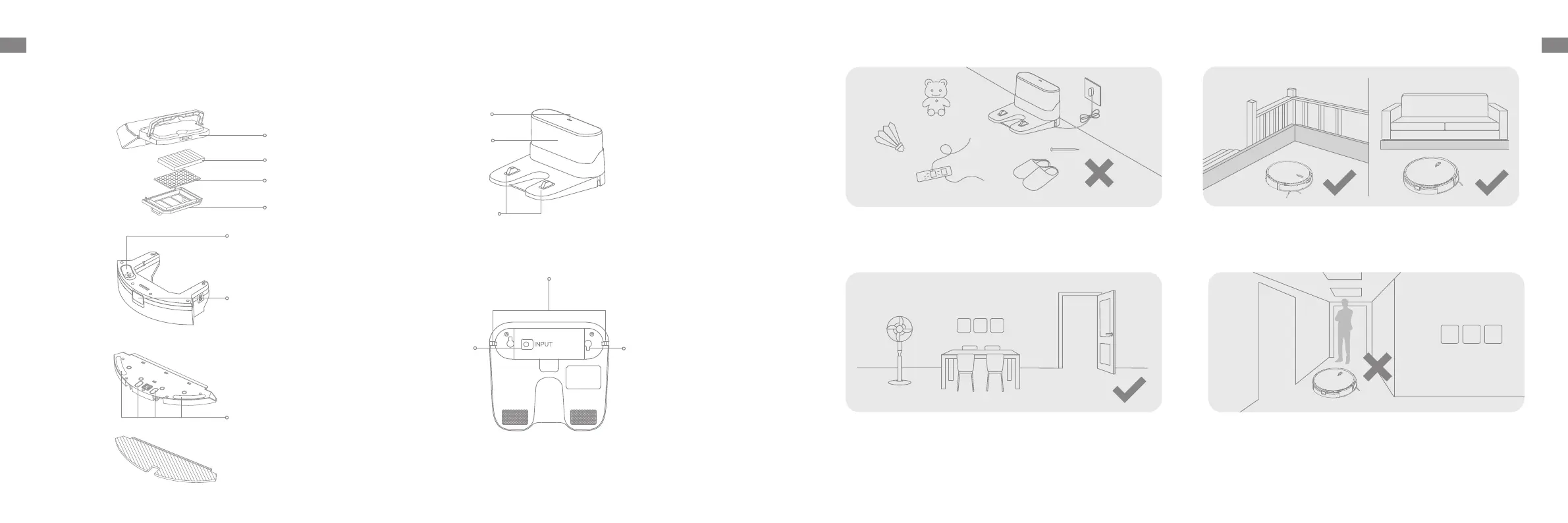 · Når du bruker roboten for første gang, må du følge den rundt mens den rengjør for å fjerne eventuelle hindringer i tide.