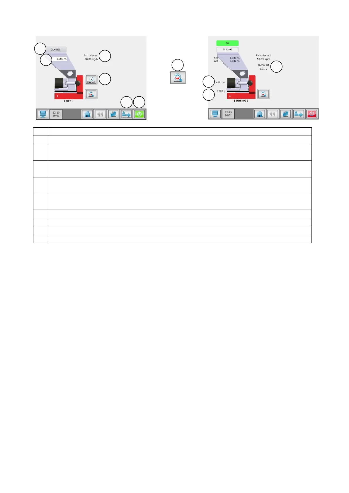 Capacity of the extruder. Used for calculating the additive to be dosed. To be set by the user when