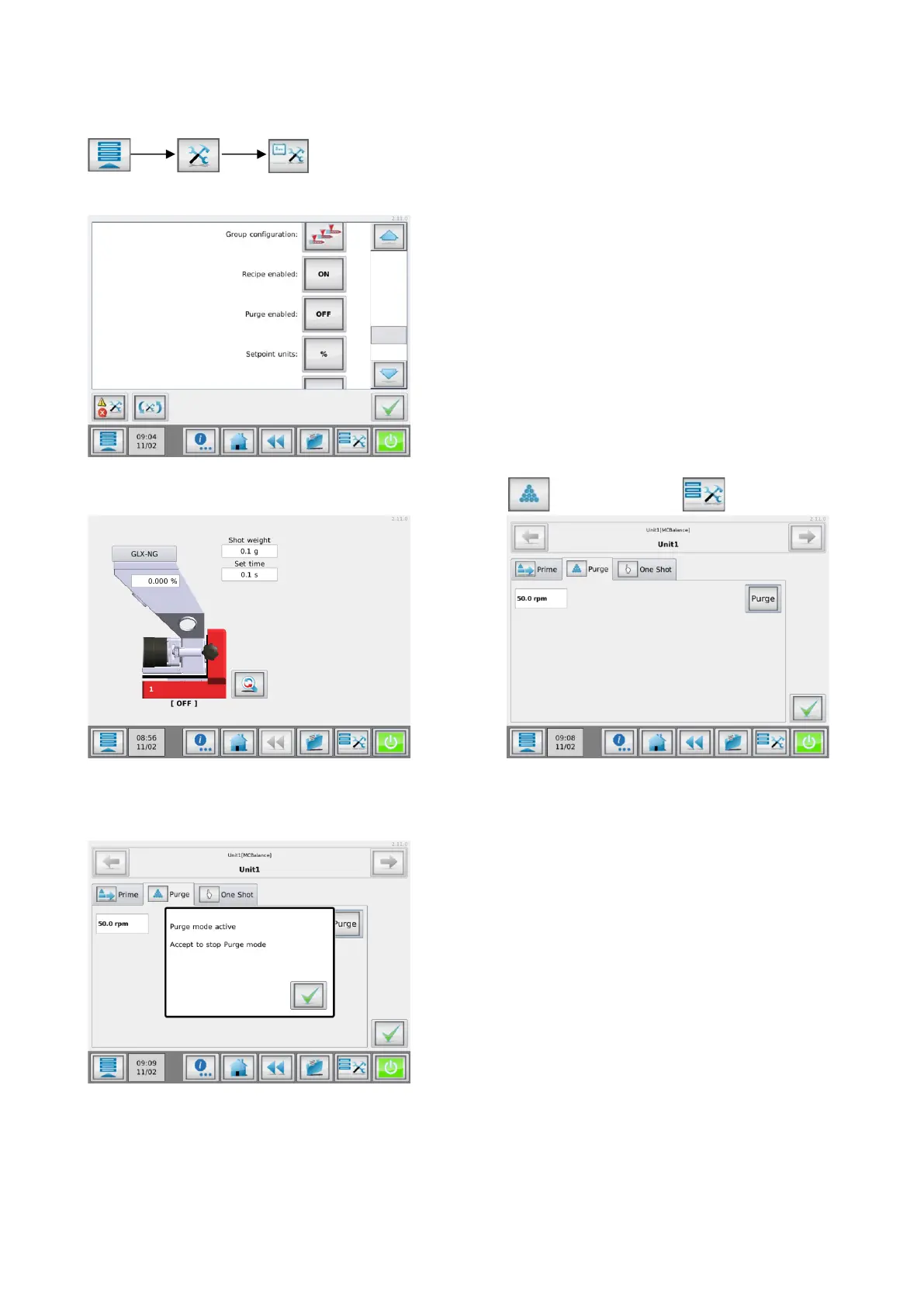 To activate the purge mode, press the purge button. A “Purge mode active” pop-up will appear. When the