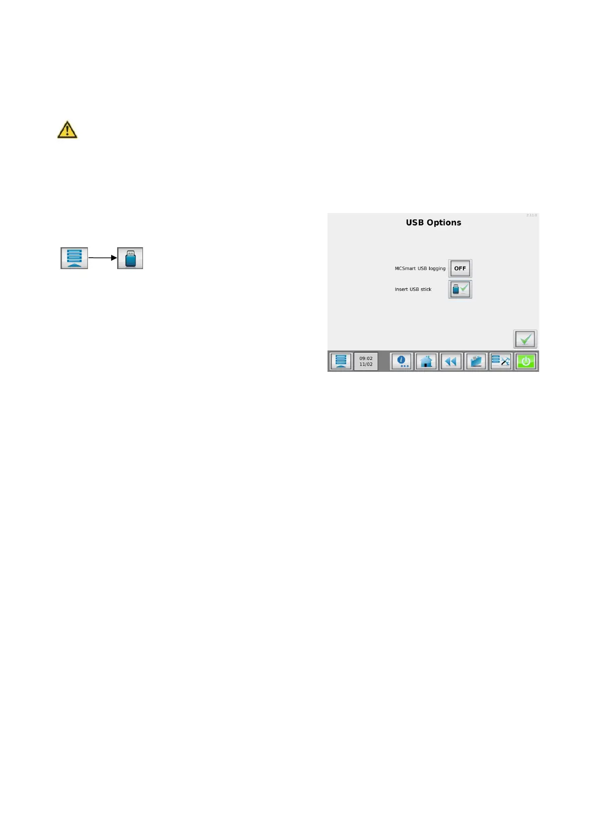 When the Insert USB stick button is pressed, the USB stick