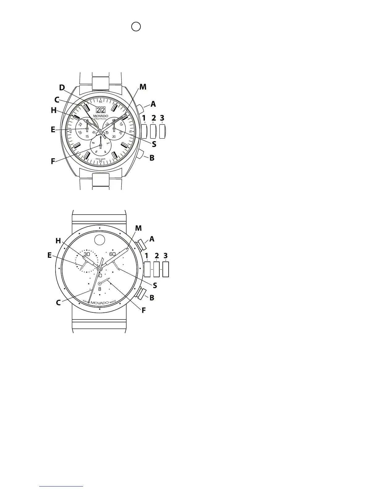 B – Chronograph push-button (split-time/reset)