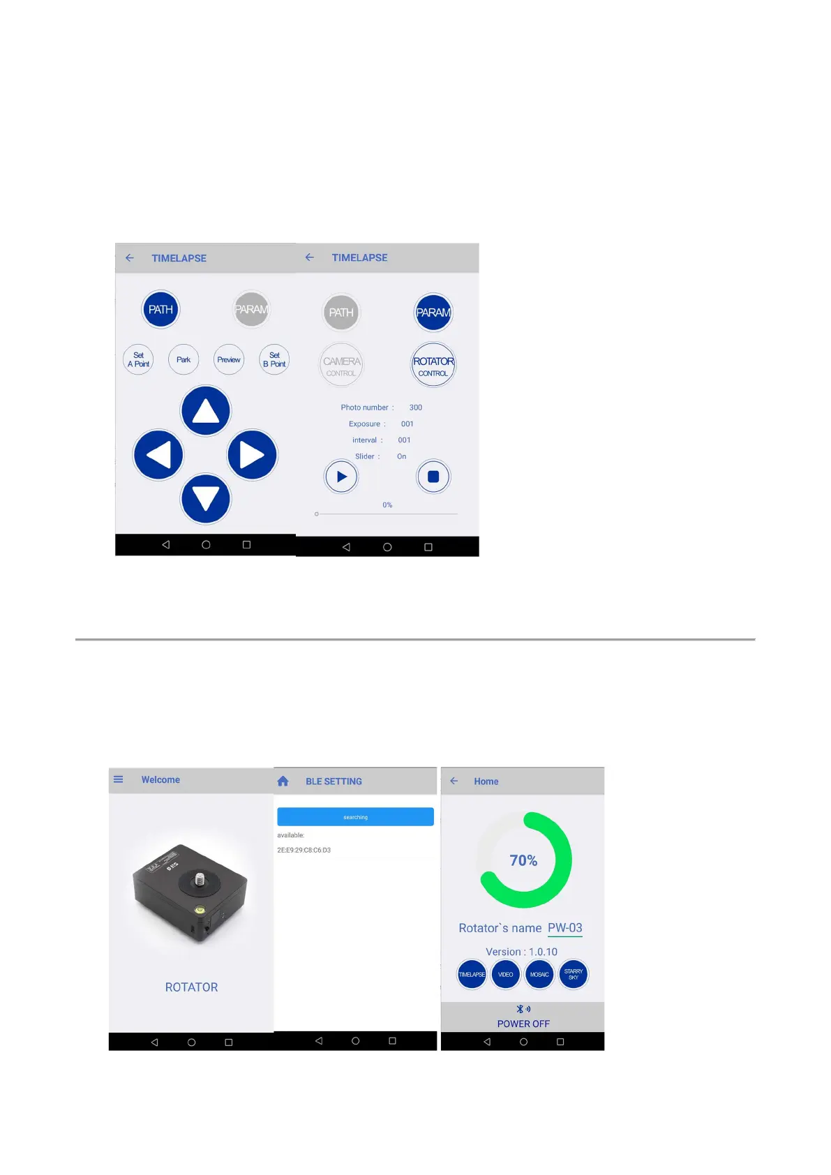 5. Connect the App with your rotator, same as "Time Lapse" part.