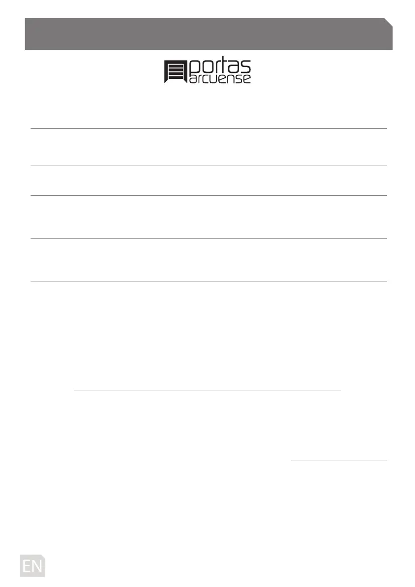 Correct use and maintenance of automation is essential to ensure that the warranty is valid. The warranty has a period of two (2) years for