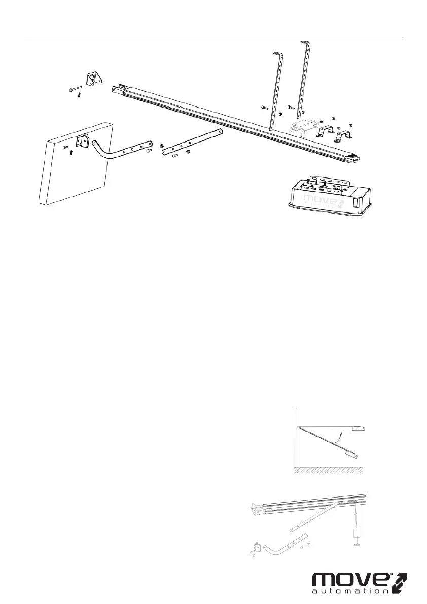 Place the steel track and opener head assembly centrally on the garage oor, with the open head