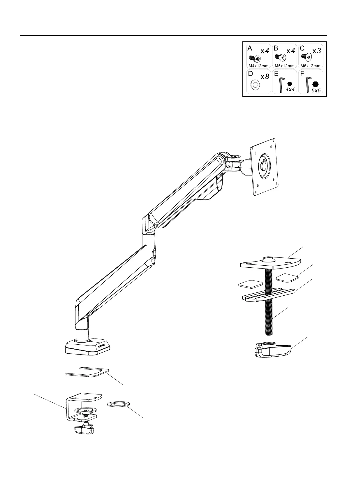 ● The desk or mounting surface must be capable of supporting the combined weight of the mount