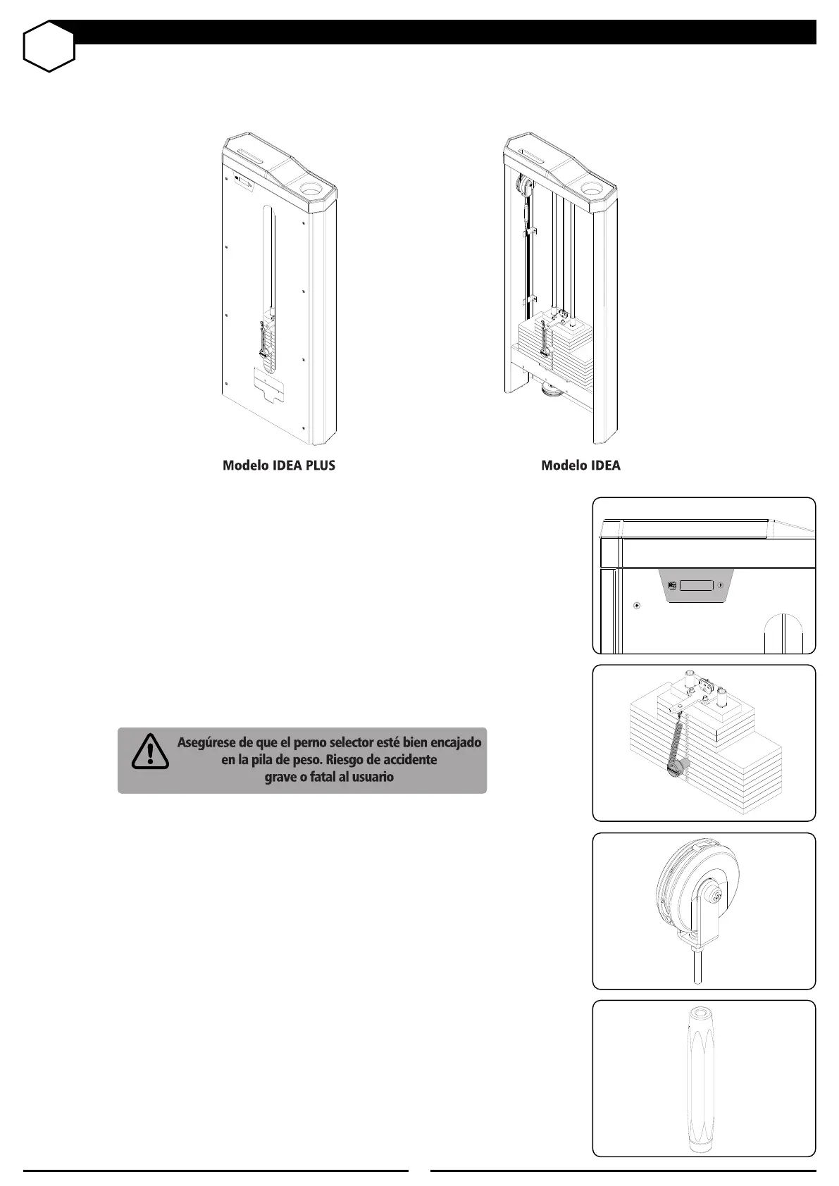 El perno selector permite que los pesos sean bloqueados para ser utilizados al realizar el