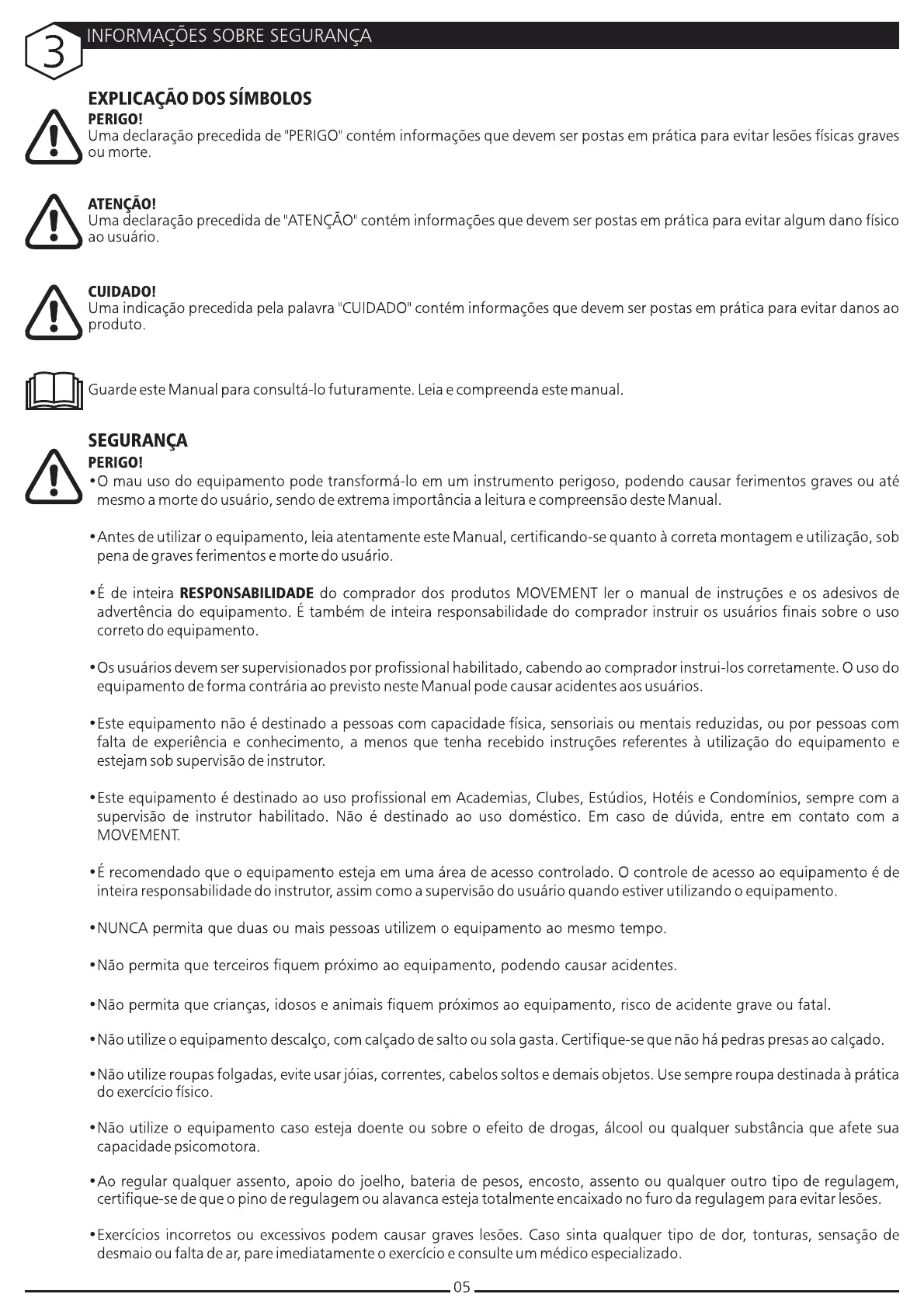 Movement IDEA - INFORMAÇÕES SOBRE SEGURANÇA; EXPLICAÇÃO DOS SÍMBOLOS; SEGURANÇA