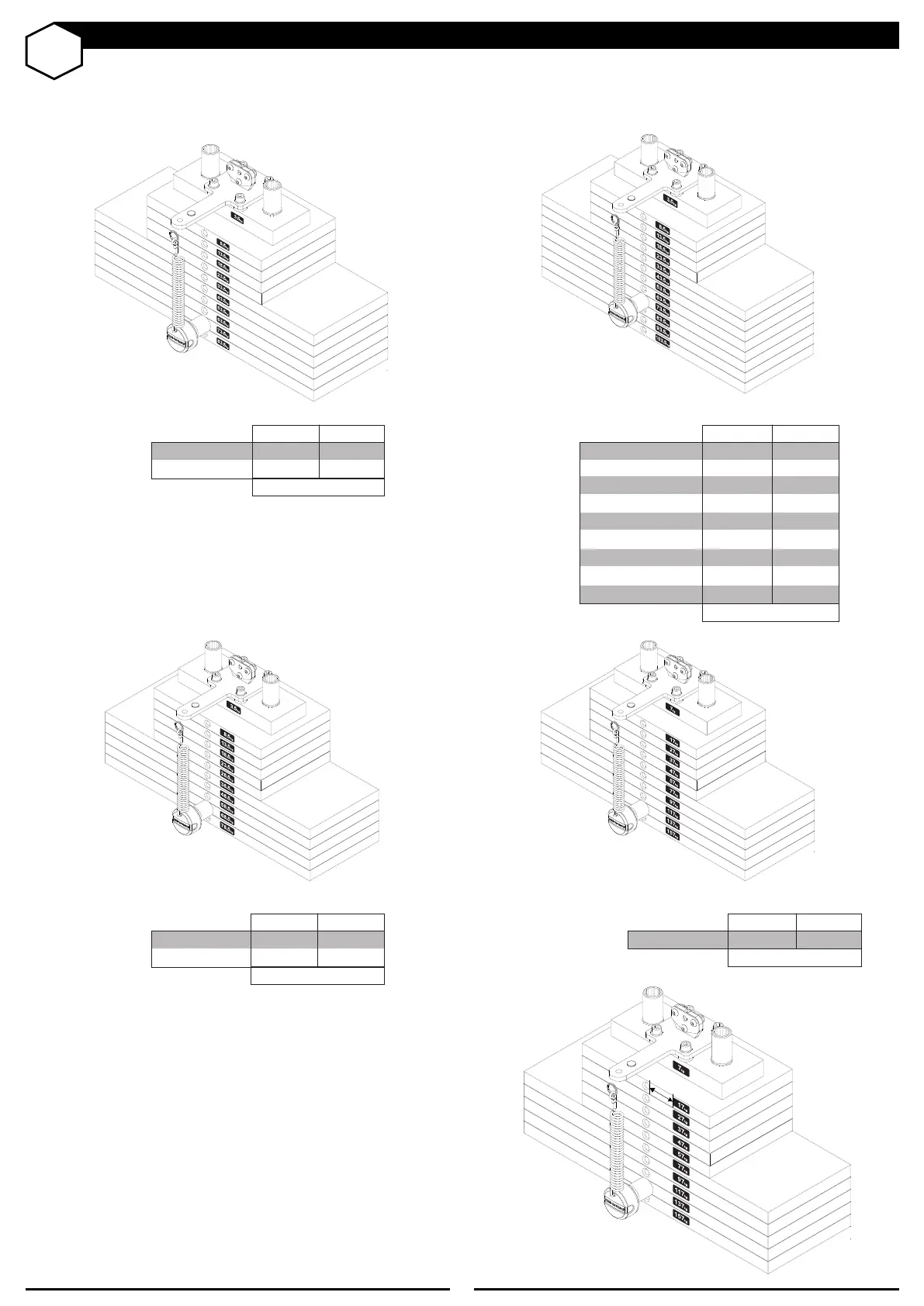 Each A line equipment has a weight stack configuration. Below are the configurations of each equipment.