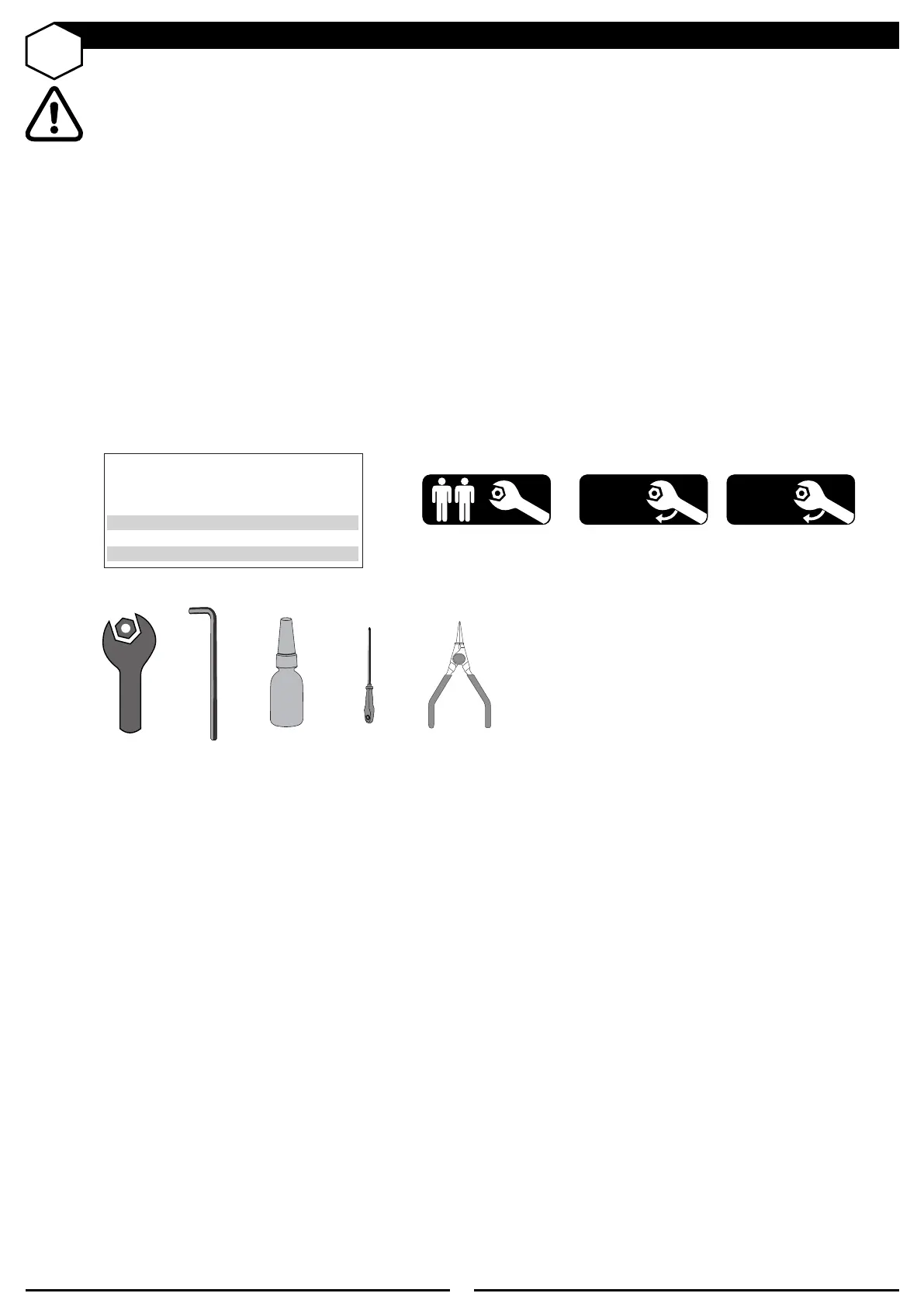 •The icons have a function to instruct the user in which the tool is to be used, how many people should make the assembling,