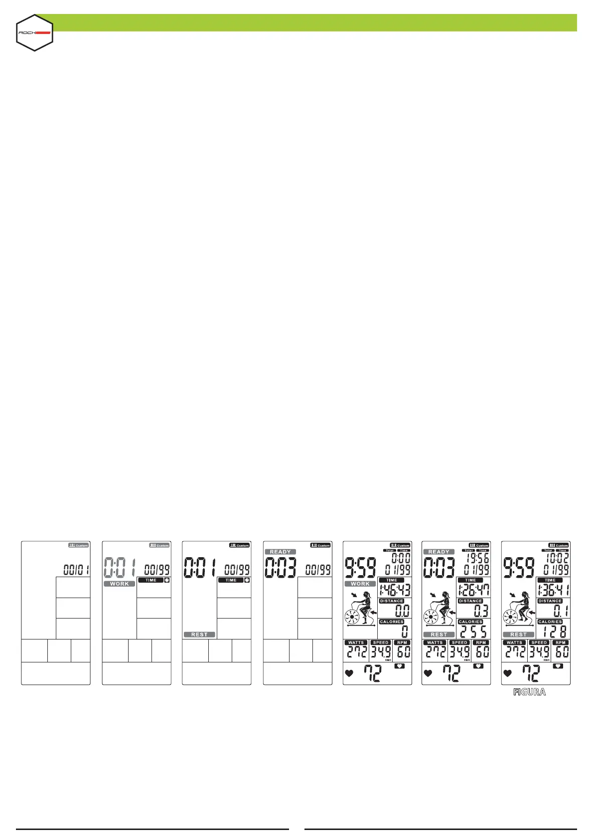 audible durante 1s y mostrará TIEMPO (PANTALLA 3), DISTANCIA (PANTALLA 4), CALORÍAS (PANTALLA 5)