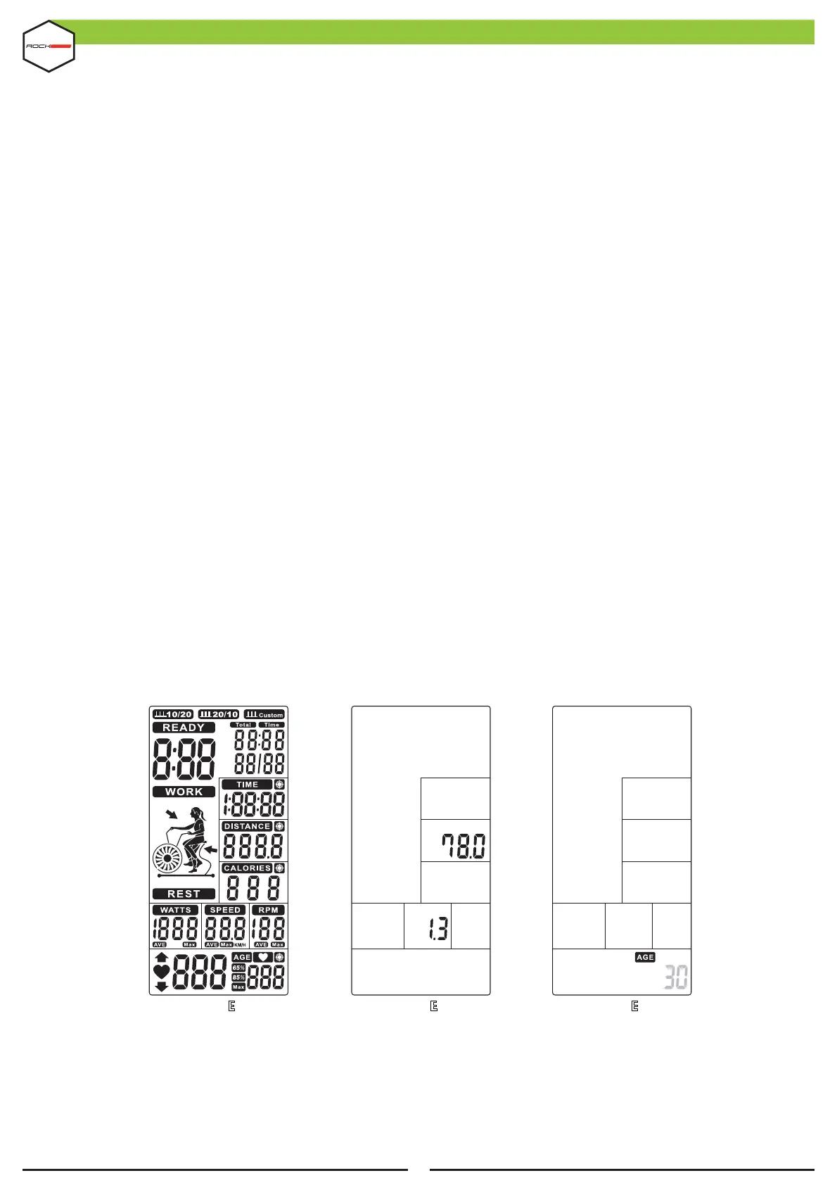 CALORIES, WATTS, SPEED, RPM and will #ash in sequence every 1s (Figure 4 to Figure 16). If there is no input on the keys or RPM♥