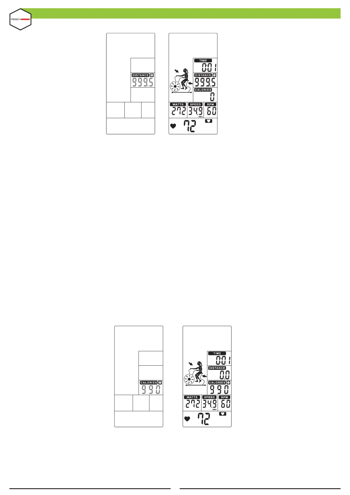 time; DISTANCE (DISPLAY 4) will display the total exercise distance; CALORIES (DISPLAY 5) will display the total