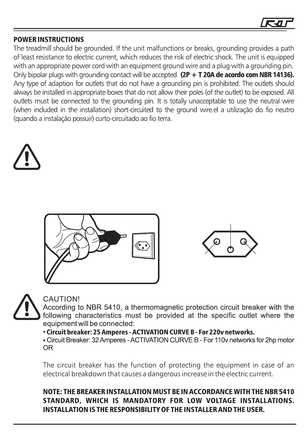 not know if the unit is properly grounded. Do not replace the original treadmill plug.