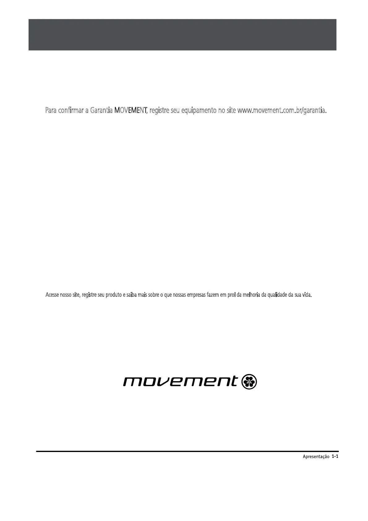 Para confirmar a Garantia MOVEMENT, registre seu equipamento no site www.movement.com.br/garantia.
