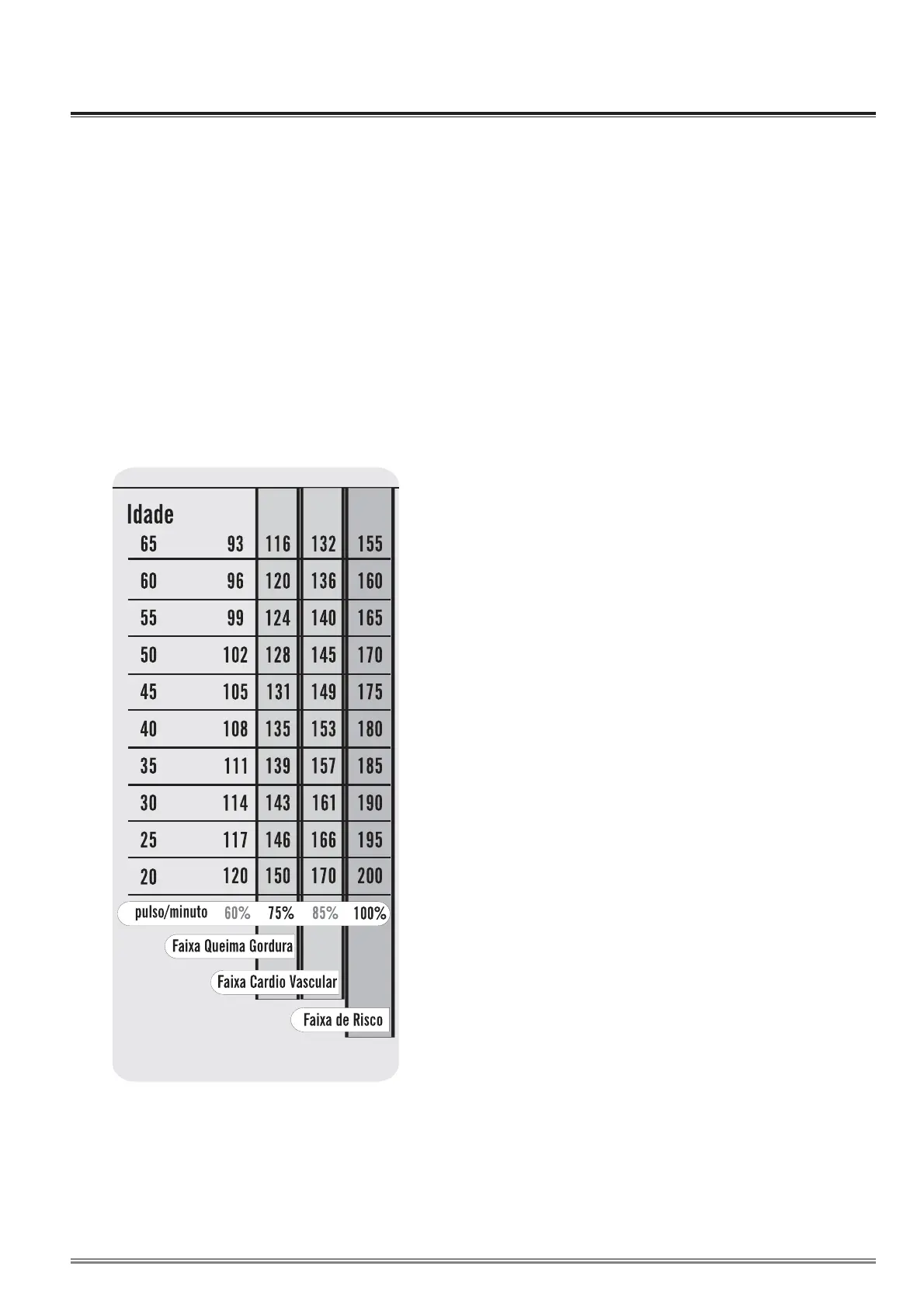 uma tabela de freqüência cardíaca, com os valores máximos, valores para queima de