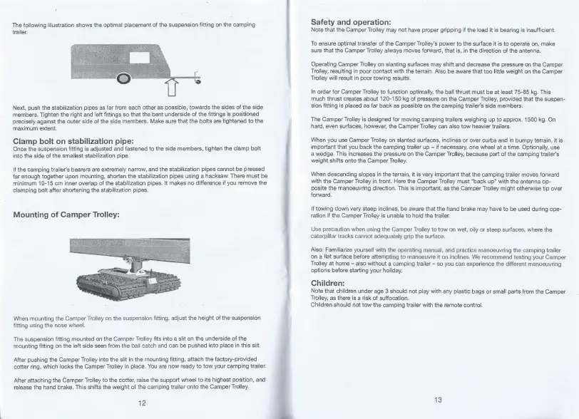 Mover-Technology CT 1500 - Mounting the Camper Trolley; Clamp Bolt on Stabilization Pipe; Weight Transfer to Camper Trolley; Safety and Operation Guidelines