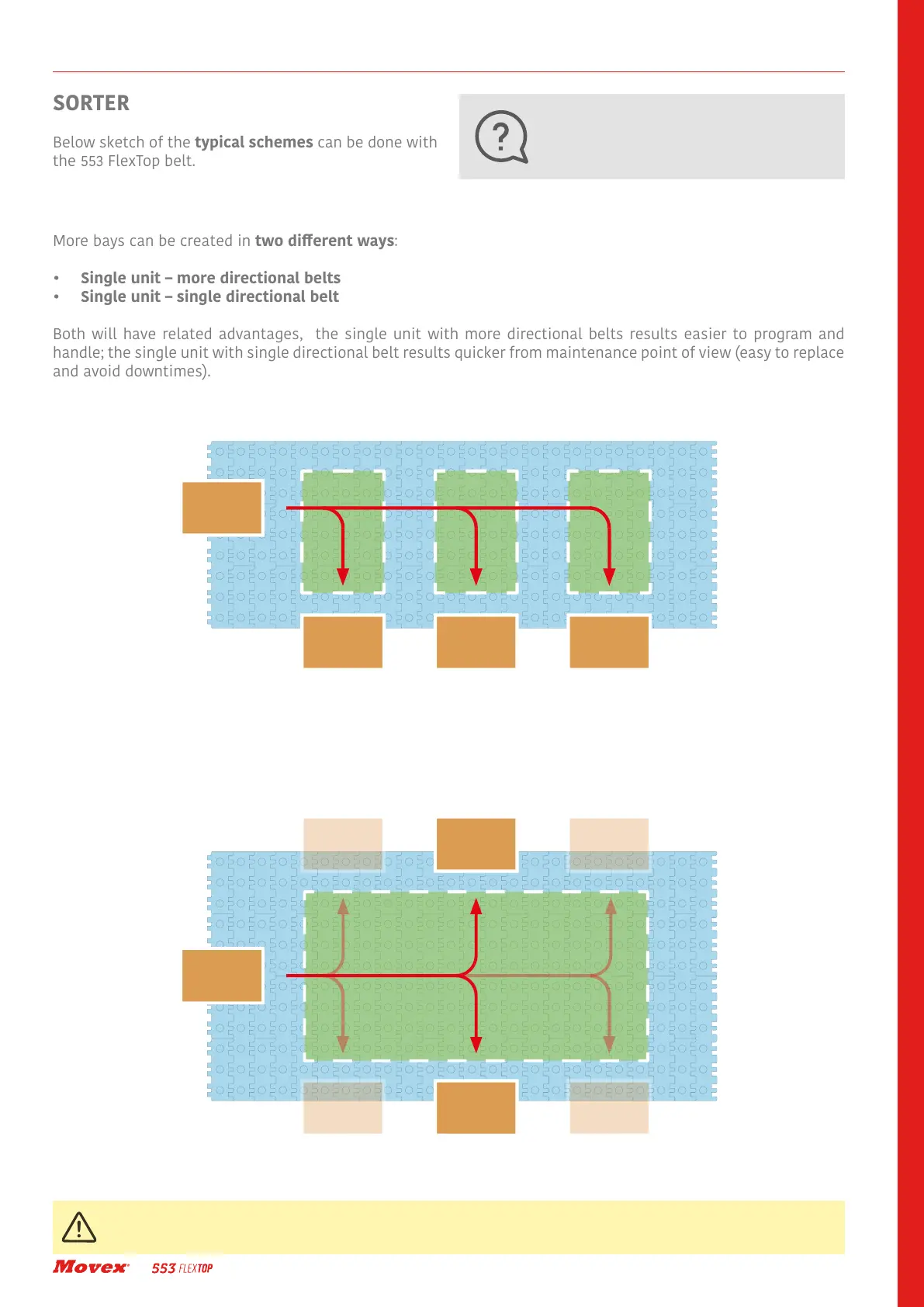 Two sides sorting can also be done with more directional belts (see the example above)