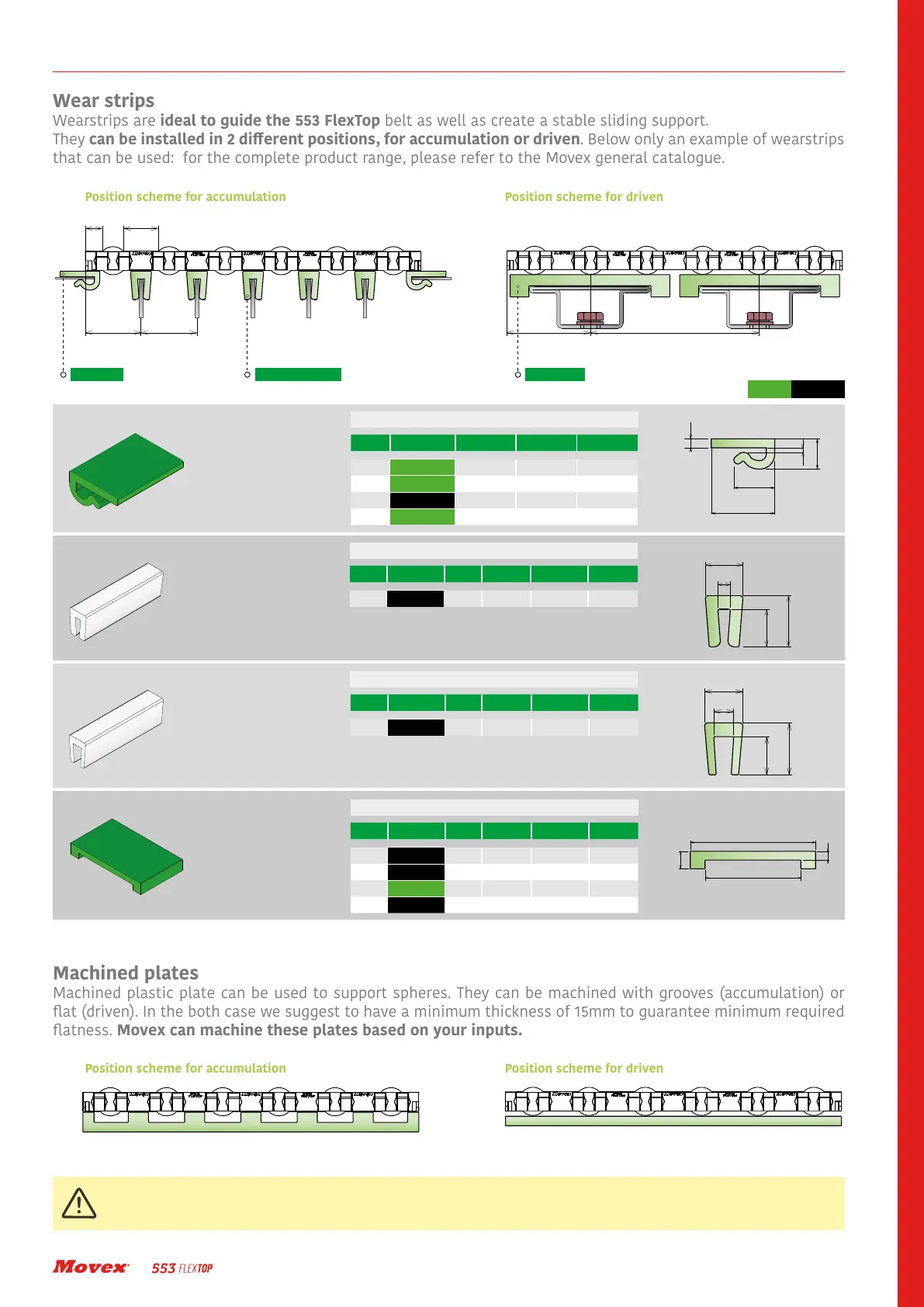 Wearstrips are ideal to guide the 553 FlexTop belt as well as create a stable sliding support.