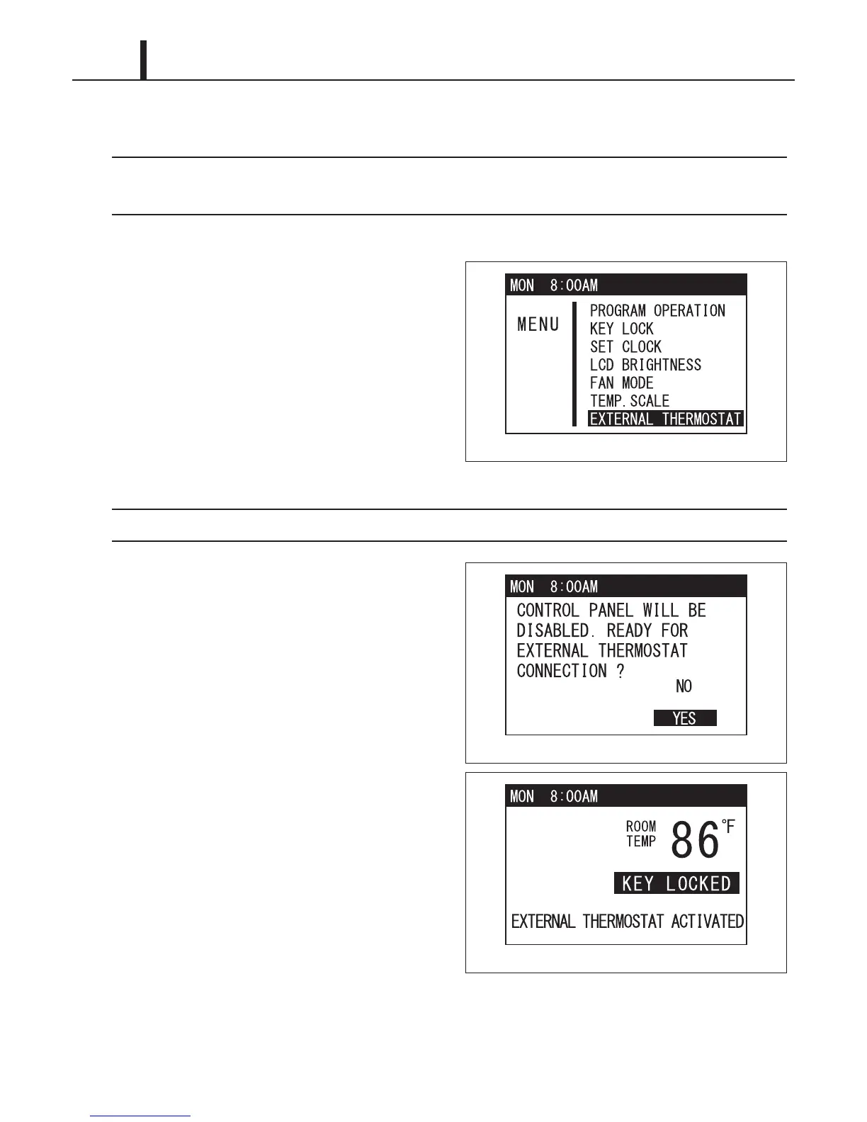 displays "EXTERNAL THERMOSTAT