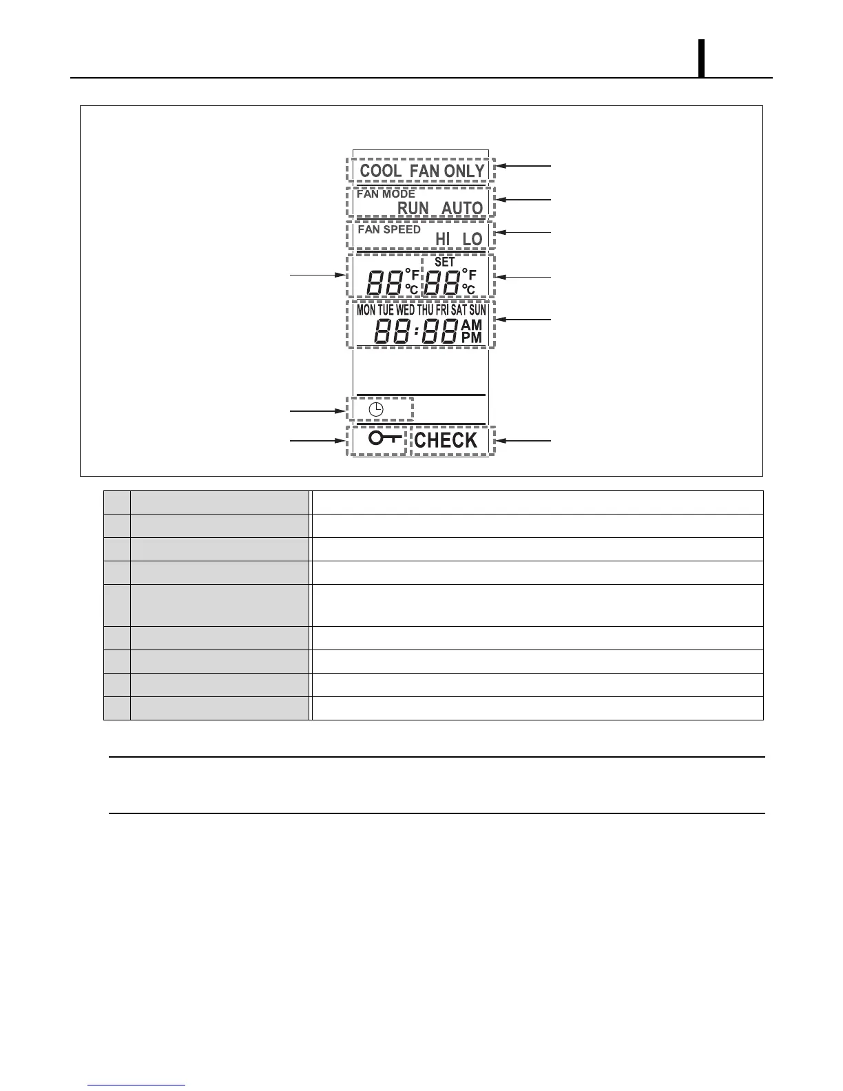 14 Room temperature Illuminates temperature in either Fahrenheit (°F) or Celsius (°C) (See Note).