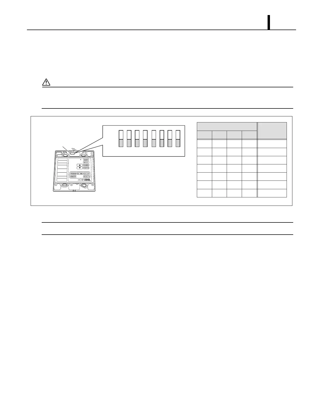 the DIP switch located inside the WMC using the table shown below as reference.