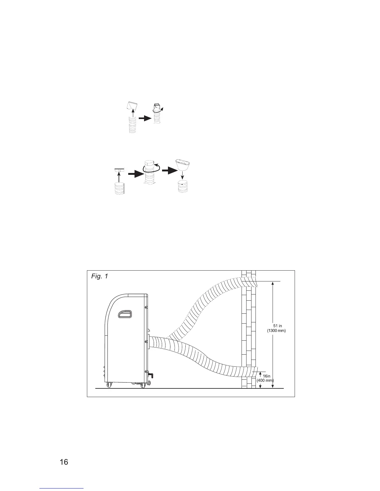 Rotate the duct (2-3 rounds). Attach the window exhaust adapter 2.