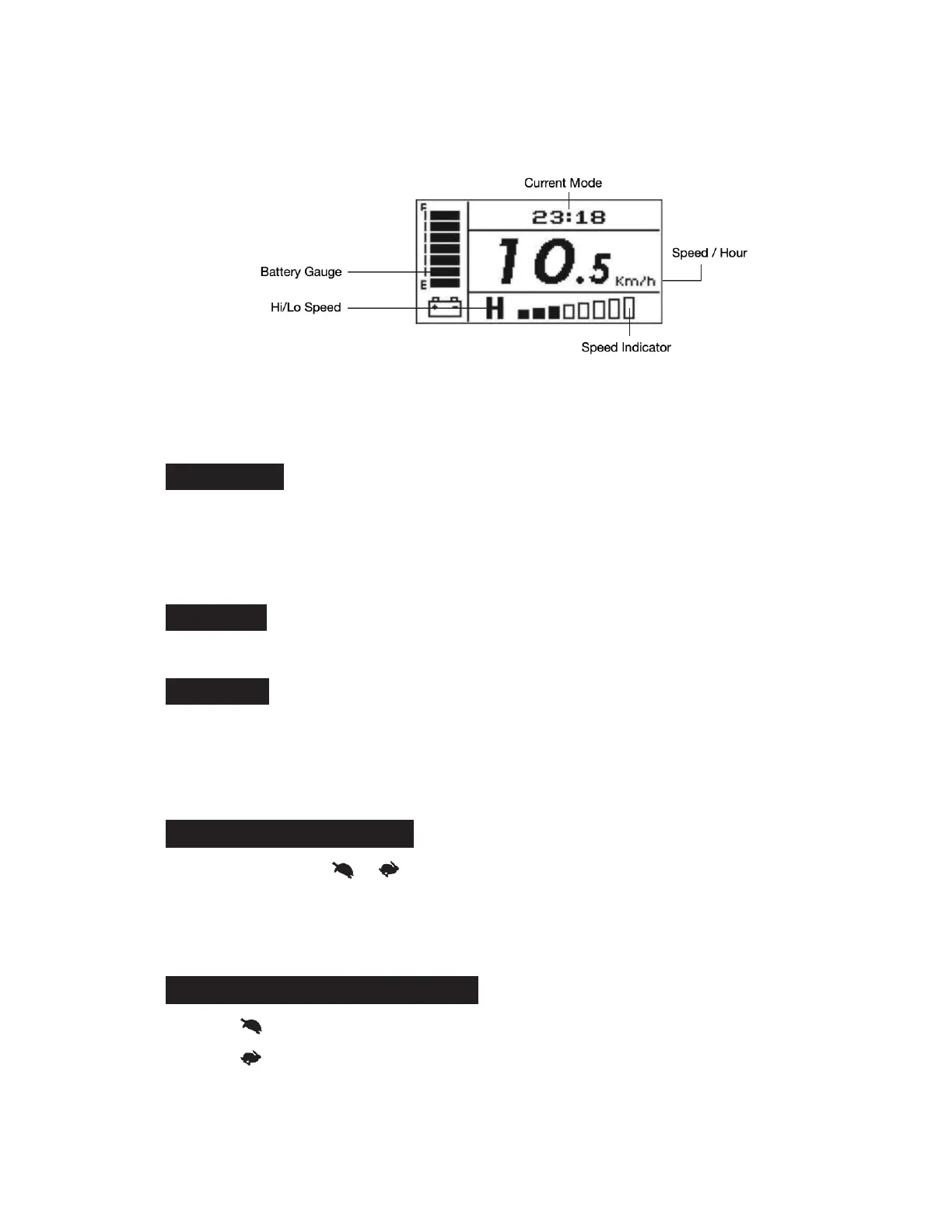 [H/L] Switch: Press H/L Speed button once, the High/Low Speed Indicator will light