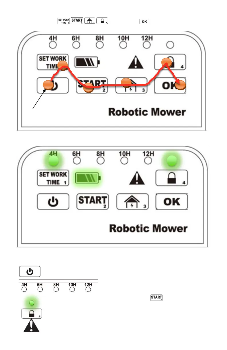 Druk op de cijfers . Bevestig met en de robot is ontgrendeld.