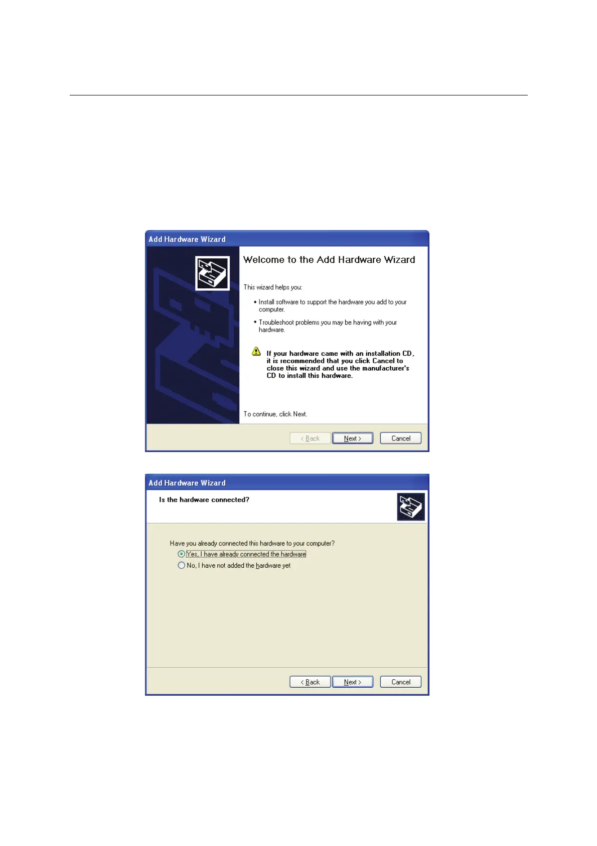 2. Select Yes, I have already connected the hardware and click Next to continue.