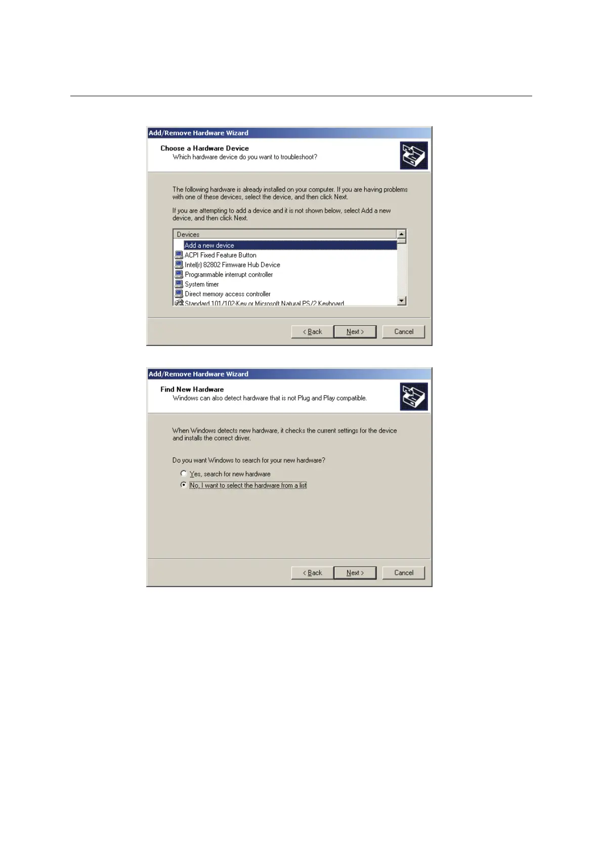 6. Select No, I want to select the hardware from a list and click Next to continue.