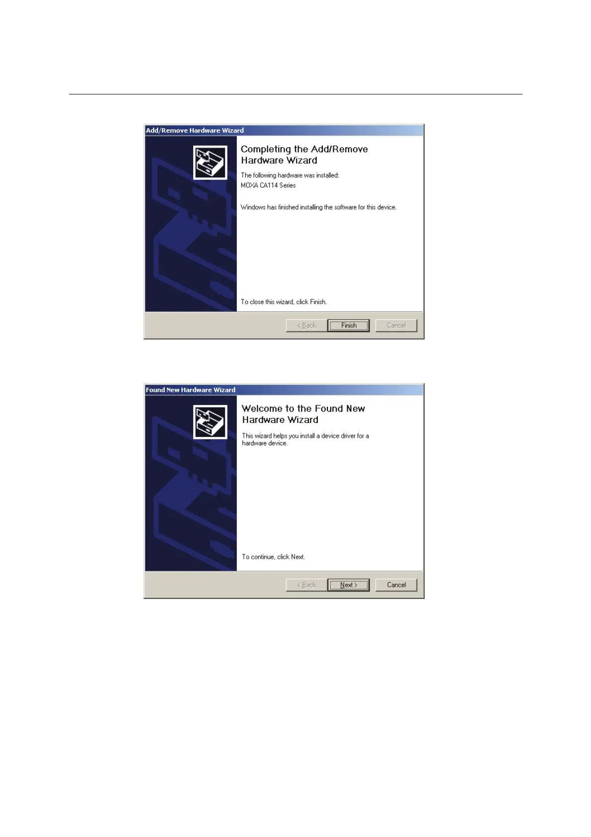 New Hardware Wizard window will open for the first serial port, port 0. Click Next to