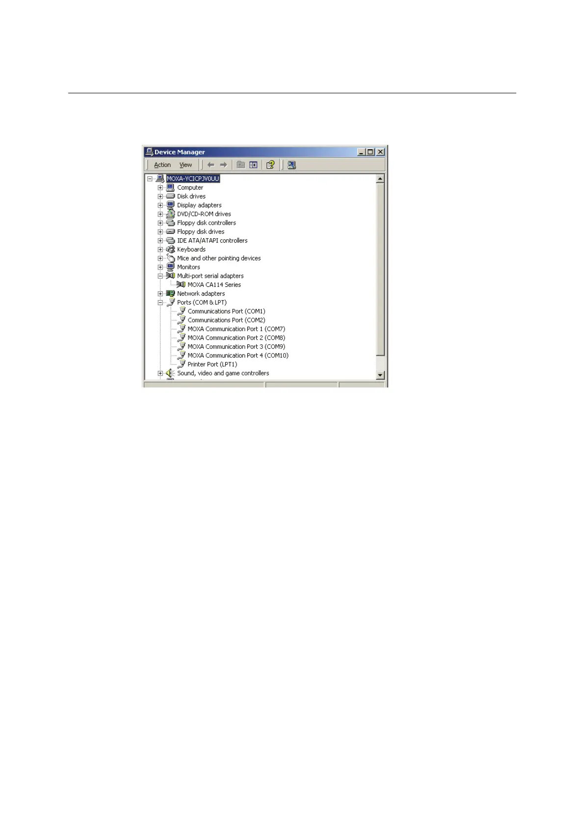 serial adapters. You should also see MOXA communication ports under Ports (COM &