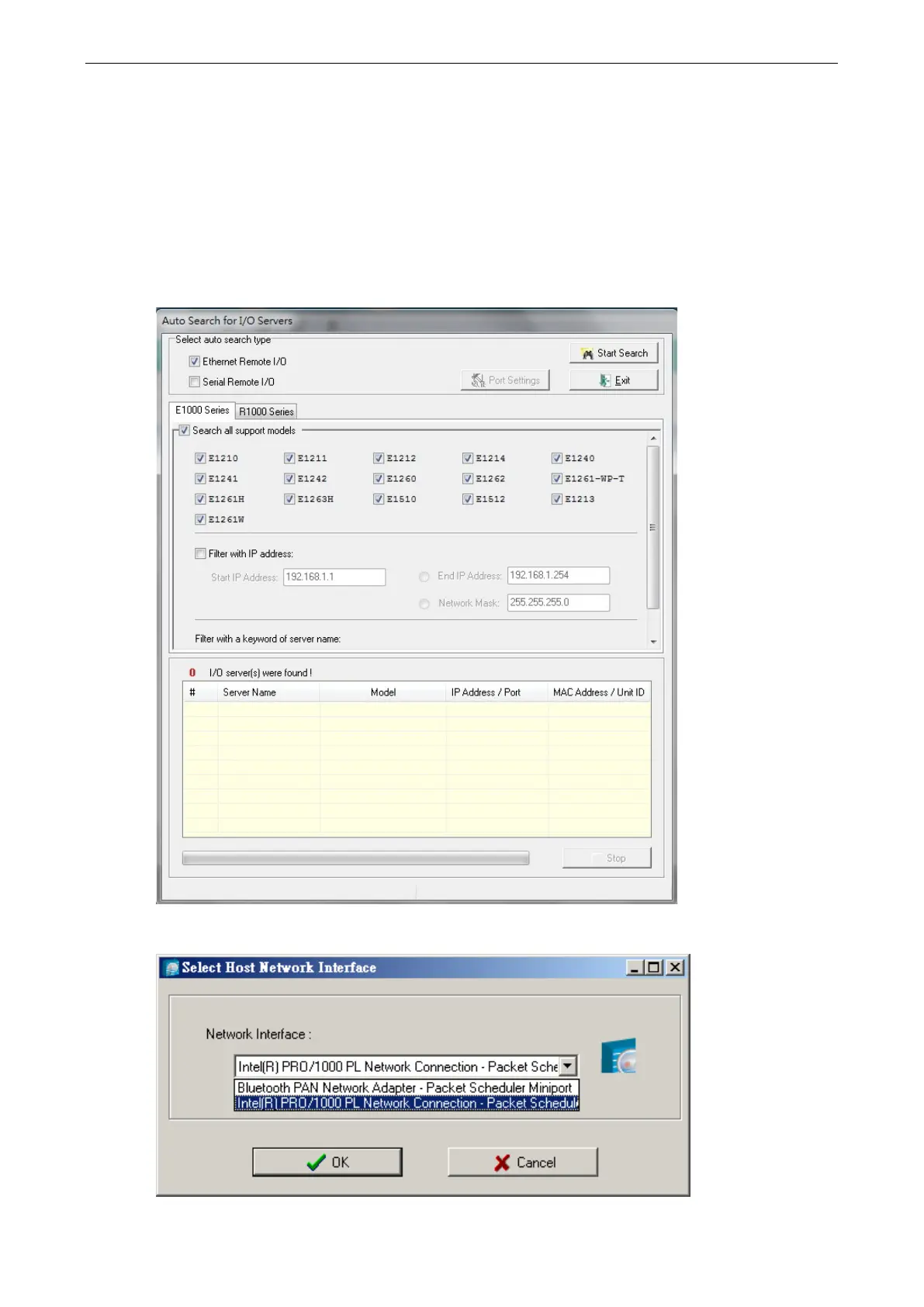 Auto Scan Active Ethernet I/O Servers will search for ioLogik servers on the network. When connecting for