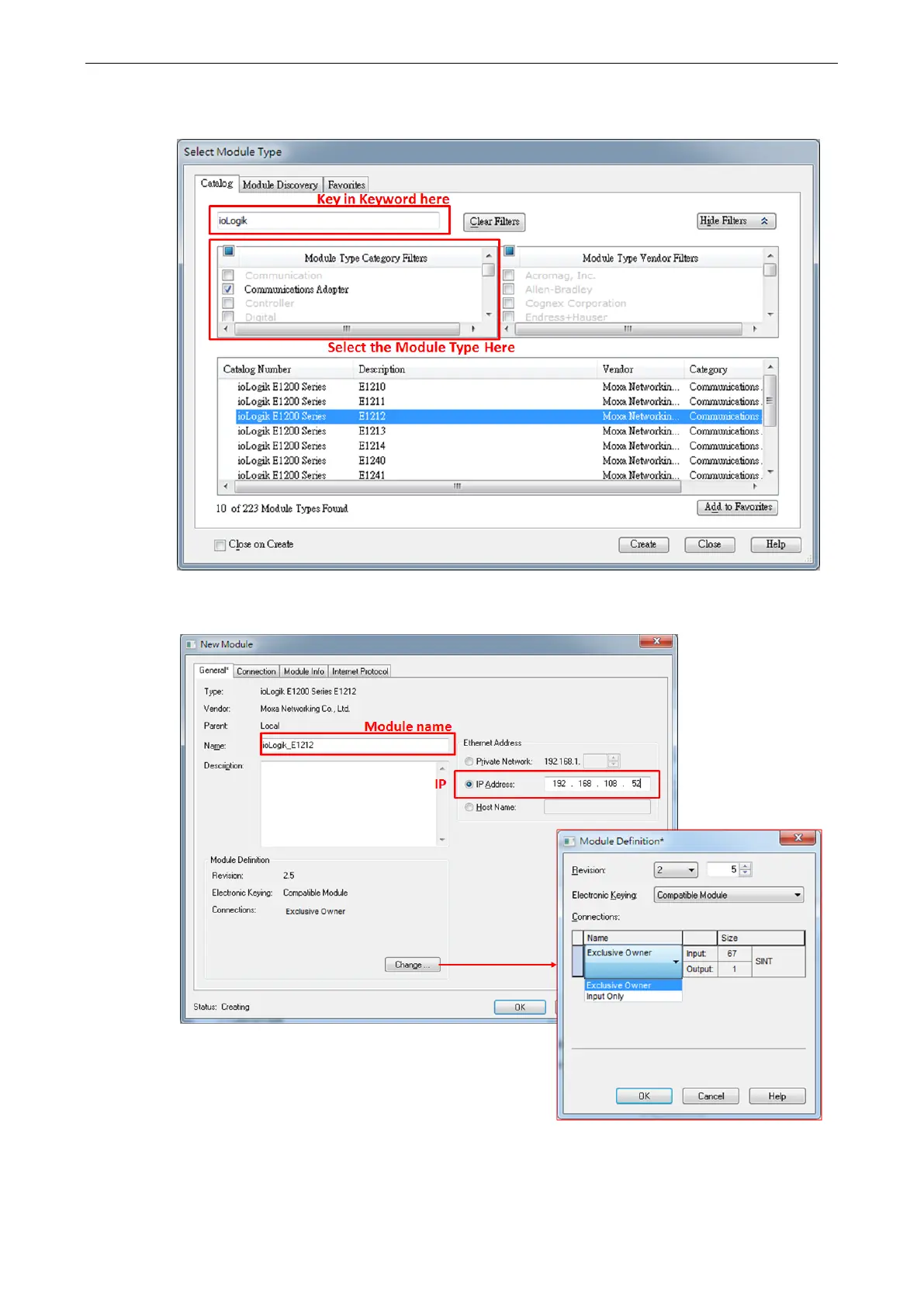 word and select the module type to speed up the search. The ioLogik E1212 is used here as an example.