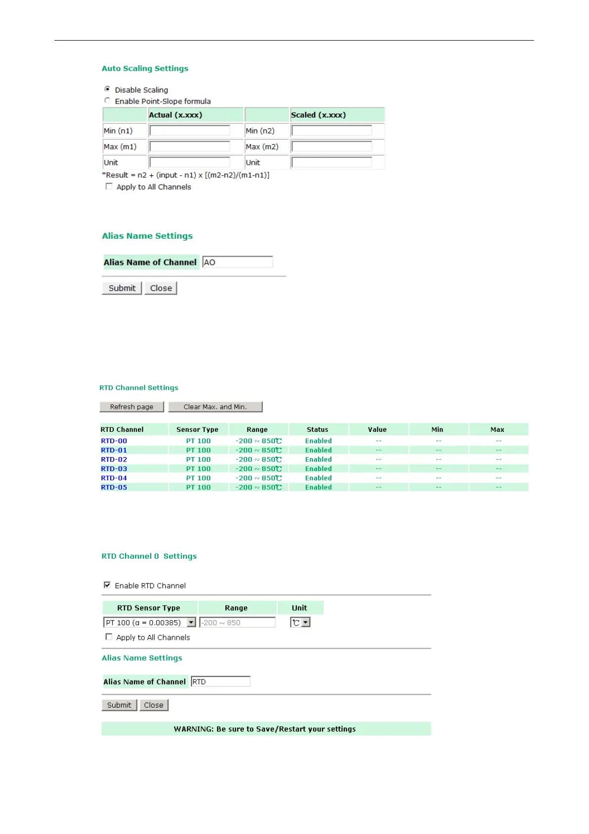 The AO channel’s Alias Name can also be configured on this page.