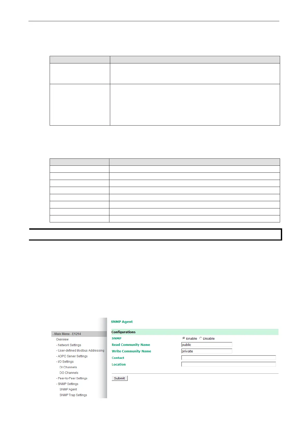devices with SNMP network management software. Use these fields to enable SNMP and set the read and write
