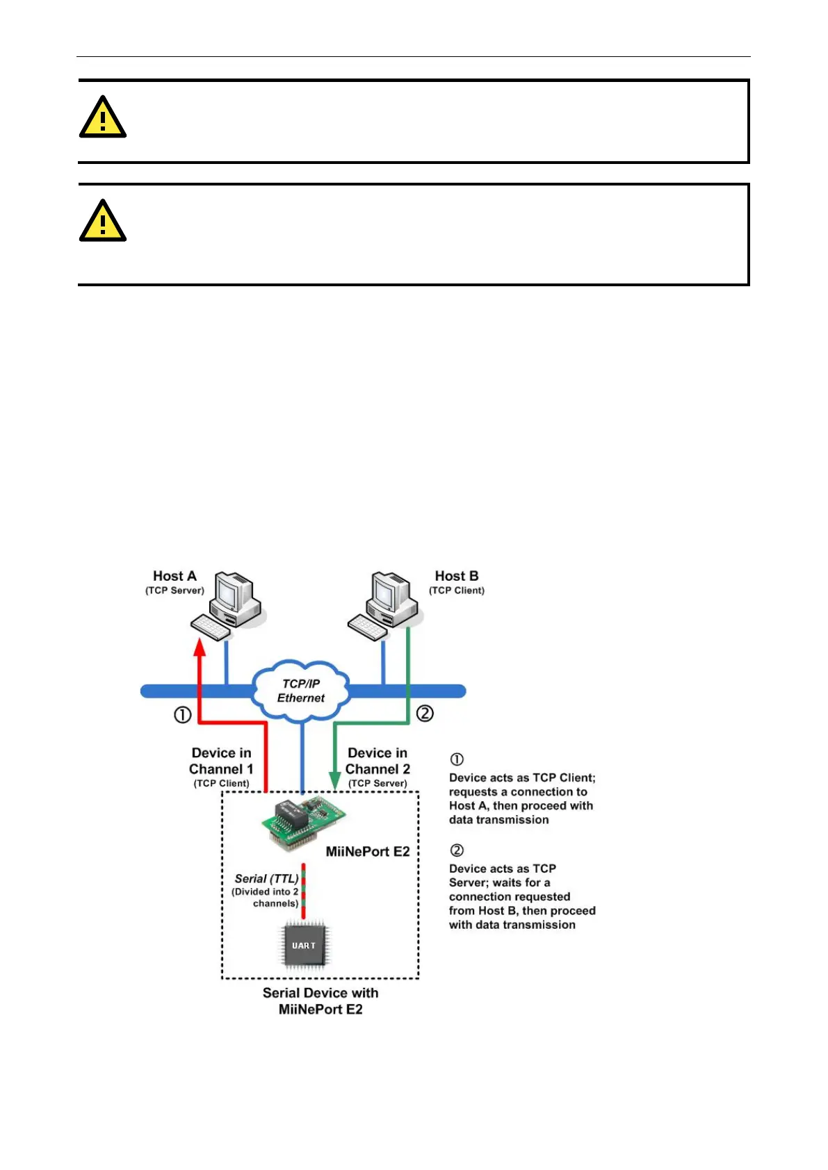 use only one serial port. For example, if you need your device to act as a TCP Server and TCP Client at the same