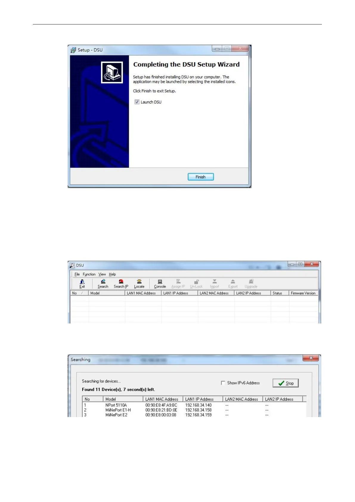 function searches by MAC address and not IP address, all MiiNePort modules connected to the LAN will be