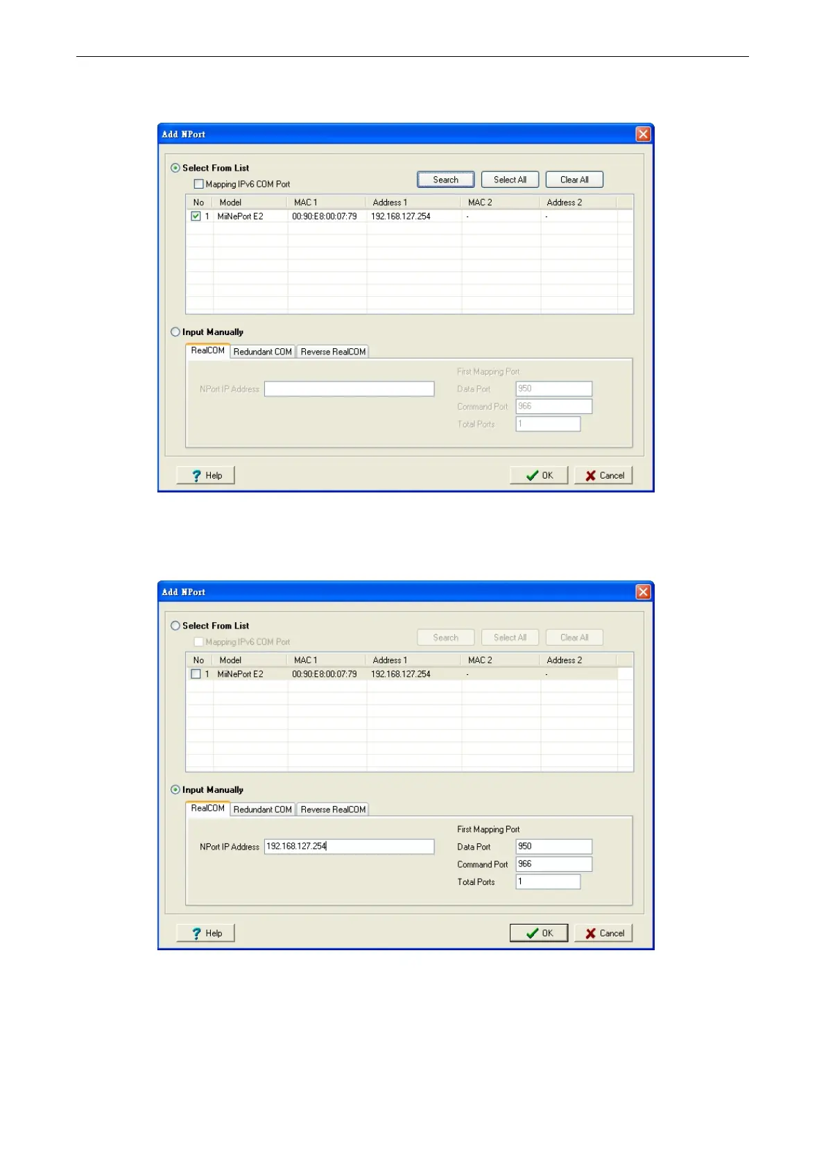 4. Alternatively, you can select Input Manually and then manually enter the MiiNePort module’s IP Address,