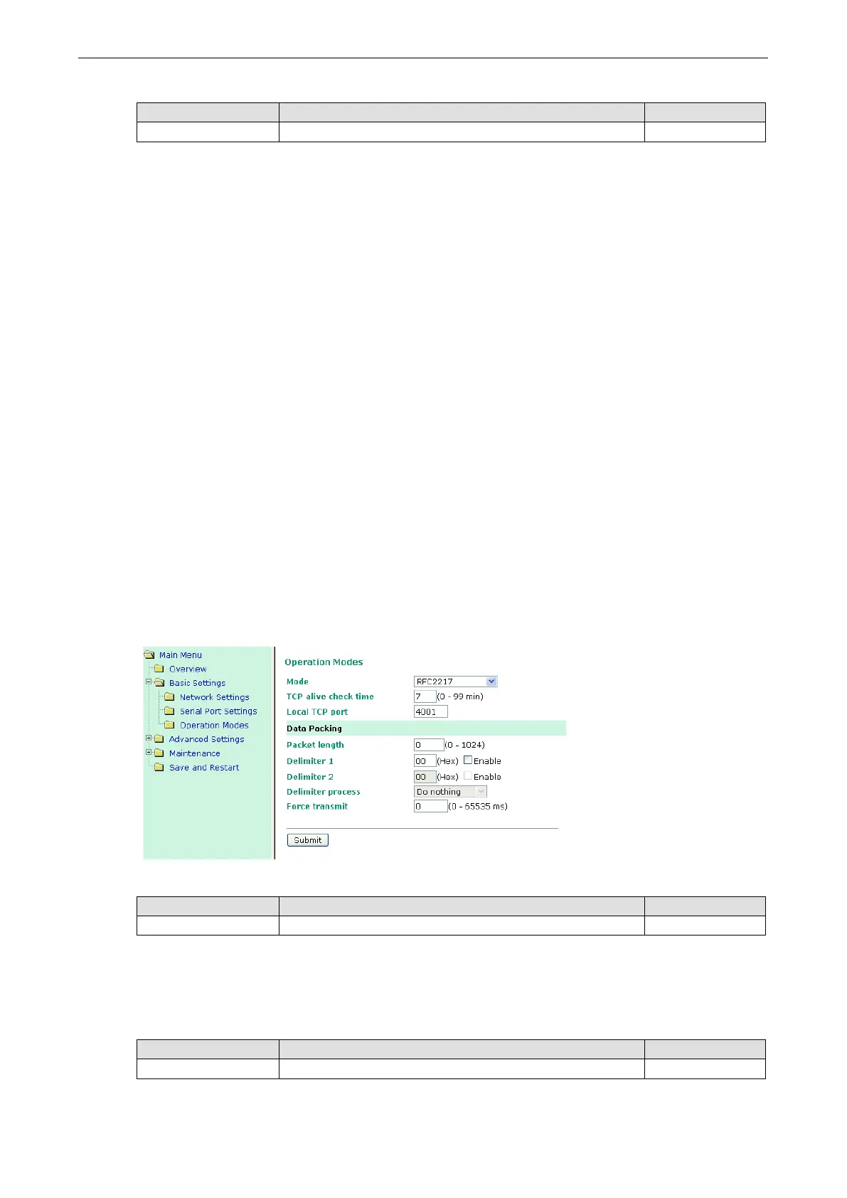 1 to 99 min: The MiiNePort automatically closes the TCP connection if there is no TCP activity for the given